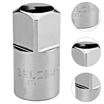 Adaptador 1/2" x 3/4" para soquete é um acessório que permite maior torque na remoção e apertos de porcas e parafusos, podendo ser acoplado a outros acessórios. Fabricado em aço cromo vanádio (Cr-V), possui acabamento polido que grande impacto visual e facilita a limpeza da ferramenta.