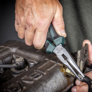 Cabo antideslizante em TPE de duas cores proporciona maior conforto e empunhadura; Acabamento anticorrosão e resistente a óleo; Área de corte temperada a laser projetada para cortar fios com dureza HRC40.