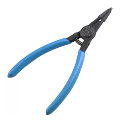 Corpo em aço Gedore-Vanadium e empunhadura plastificada na cor azul padrão Gedore. Acabamento escurecido. Alicate com pontas fixas e retas. Possui mola para regulagem da abertura. Para anéis de segurança externos conforme norma DIN 471 e DIN 983.