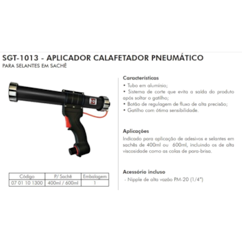 Indicado para aplicação de adesivos e selantes em sachês de 400ml ou 600ml, incluindo os de alta viscosidade como as colas de para-brisa.