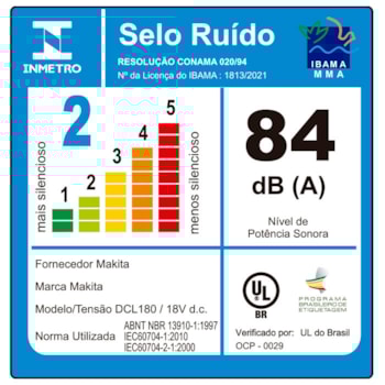 Nível de ruído: 84 dB(A)