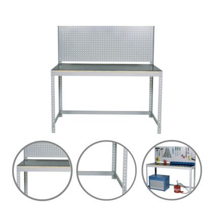 Projetadas para dar apoio às atividades no seu espaço de trabalho, as Bancadas Multiuso possuem resistentes tampos e robusta estrutura em aço carbono. A BM-S tem tampo de 20 mm de espessura e painel para ferramentas. Manta de borracha de 2 mm de espessura. Tampo de madeira OSB e manta de borracha de 2 mm de espessura. Colunas parafusáveis. Amplo painel para ferramentas com 1505 mm x 572 mm (C x L).