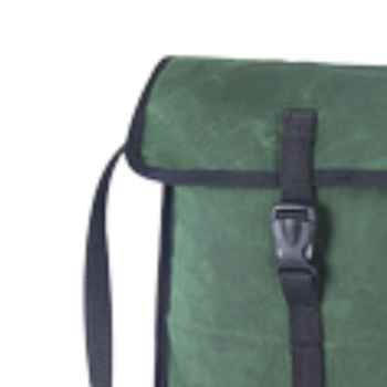 Bolsa a tiracolo com tampa; em lona verde, com reforço no fundo e fecho de fivela e alça em nylon.