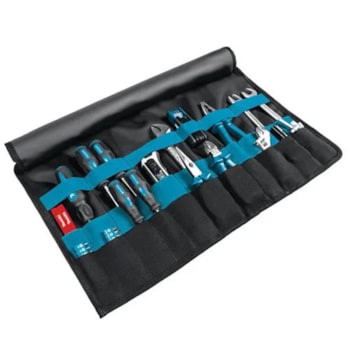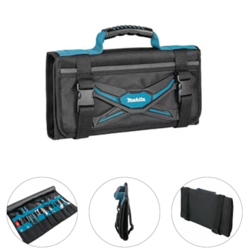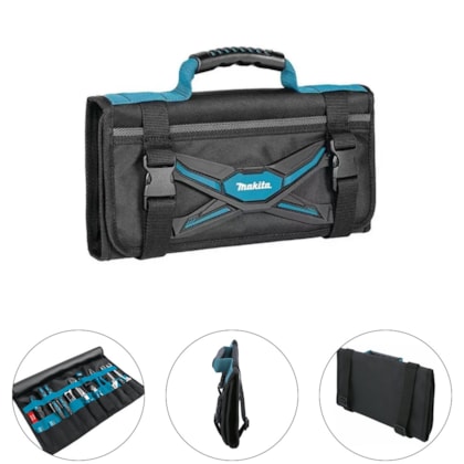 Bolsa para ferramentas manuais tipo envoltório, com compartimentos internos, Makita E-05533.Permite organização das ferramentas e transporte fácil e seguro aos locais de trabalho.Compacta, facilita o armazenamento em armários e bagageiros.
