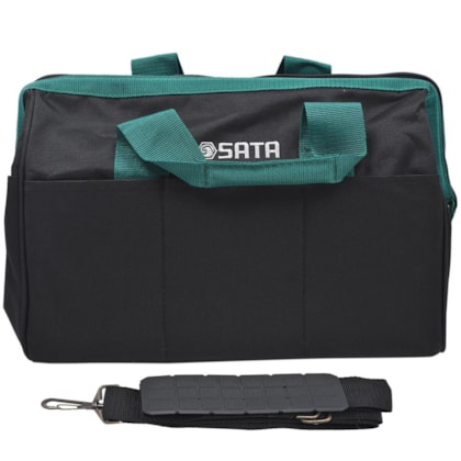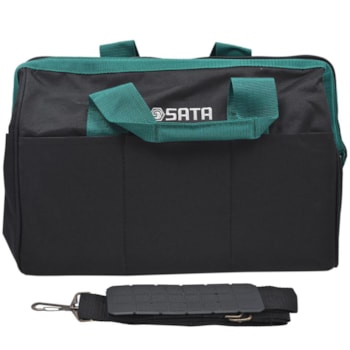 Possui alça fixa de mão e alça removível com protetor de ombros emborrachado e ergonômico.