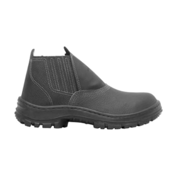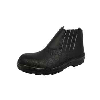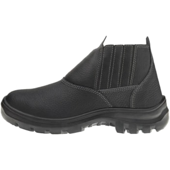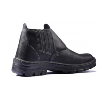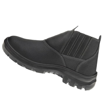 Botina de segurança de elástico com dorso e cano sintético, na cor preta, com solado bidensidade.