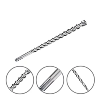 Brocas SDS max-4 está equipada com um cabeçote de 4 lâminas que oferece longa duração em concreto armado. O design de 4 lâminas garante uma utilização prolongada e sem obstruções ao perfurar vergalhão. O formato em U de 2 canais também prolonga a duração além de oferecer uma boa remoção do pó. A durabilidade é maior graças à construção em metal duro altamente duradouro que resiste ao desgaste da perfuração.