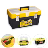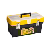 Caixa contractor versátil que permite ser utilizada como uma bancada móvel devido a sua estrutura reforçada. Possui bandeja portátil permitindo o armazenamento de ferramentas grandes, mobilidade facilitada e rodas resistentes. Possui ainda tampa com canal chanfrado, facilitando o corte de perfis de madeira quando apoiados nestes chanfros e alça deslizante para transporte.