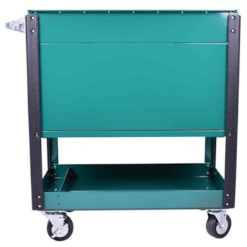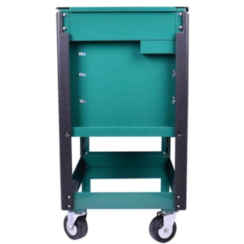 Rodas giratórias em nylon de 4”x1” com trava em duas delas para maior segurança e estabilidade.