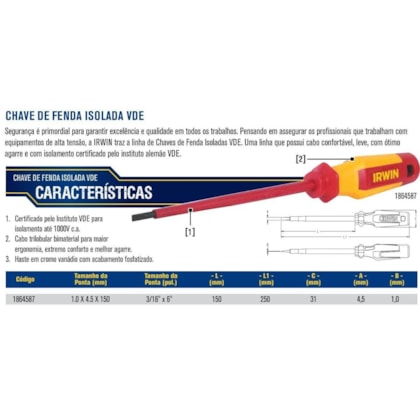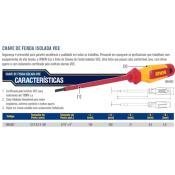 CHAVE DE FENDA ISOLADA VDE PEÇA 3/16 X 6´´ IRWIN