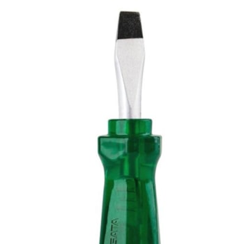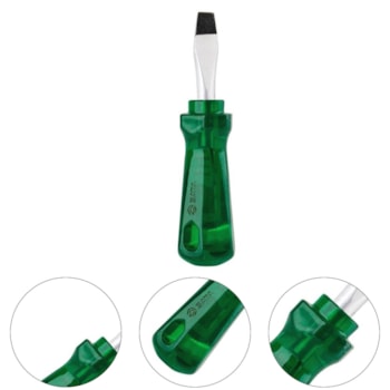 Chave De Fenda com cabo PVC translucido verde ergonômico com ponta oxidada para evitar descascamento e proporcionar mais segurança. Possui a haste toda temperada com acabamento niquelado e cromado. Ideal para uso profissional pesado, seu cabo ergonômico rígido e resistente injetado em PVC na cor verde transparente deixa aparente a profundidade que a haste está garantindo máxima qualidade e resistencia para o trabalho diário.