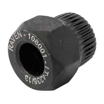 Chave com 33 dentes e sextavado externo de 22mm para a polia tipo roda livre ("catracada"), marca INA, dos alternadores Valeo e Bosch. Usar com chave T50 ou M10 não fornecidas pela Raven. Código MWM 9.407.0.690.061.4.