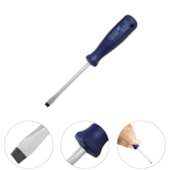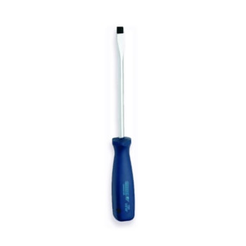 Chave com haste redonda e resistente, com perfil de encaixe para parafuso tipo fenda simples.