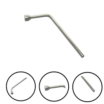Chave de roda tipo L é produzida em aço especial, temperado e revenido, oferecendo alta resistência e durabilidade. Peça forjada com uma boca usinada de parede fina de alta resistência, com espátula. Ideal para apertar e afrouxar parafusos de rodas de automóveis.