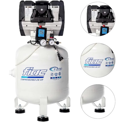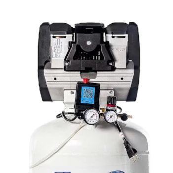 Compressor de ar isento de óleo, com regulador de pressão, dois manometros para visualização da pressão no reservatório e na saída do ar, cabo de energia plug in play, instalação elétrica pronta para o uso, amortecedores de vibração, QR Code para acessar manual de isntruções e documentções do seu produto, pintura interna no resrvatório com tinta epóxi antibactericida que garante ainda mais a pureza do ar comprimido. Ideal para instalações internas com pouco espaço em clinicas odontológicas, veterinárias, laboratórios, ambientes hospitalares, protéticos, embalagens, industrias Alimentícias e de bebidas, cervejarias artesanais, pinturas, industria quimica, processamento de comidas e muito mais.