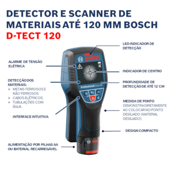 - 1 Detector e Scanner de Materiais até 120 mm Bosch D-TECT 120;