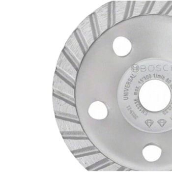 Disco diamantado desbaste turbo 4" x 22 mm expert BOSCH Característica Desbaste - Concreto, Alvenaria - Qualidade BOSCH por um preço acessivel - Melhore a vida útil da sua ferramenta, menor vibração, maior durabilidade dos componentes internos da sua ferramenta - Maior segurança, processo de balanceamento em sua fabricação reduz consideravelmente a sua vibração.
