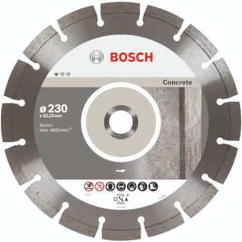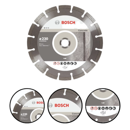 O Disco Diamantado Standard for Concrete da Bosch é ideal para cortes de boa qualidade em concreto e alvenaria; sua matriz de diamante oferece resultados sólidos graças aos padrões de alta qualidade do disco; ideal para trabalhos com Esmerilhadeiras de 9"; indicado para encanadores, eletricistas, trabalhadores de construção civil, construtores, instaladores de piso e revestimentos (azulejos e porcelanato), Instaladores de piso e revestimentos sanitários, pedreiros, instaladores, calheiros, azulejistas, vidraceiros, mestre de obras, etc.