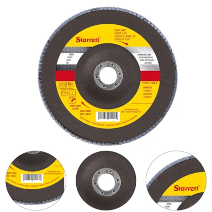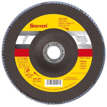 Discos de flap fabricados com grãos de zircônio de alta performance proporcionando ótima taxa de remoção e excelente acabamento, possui suporte em fibra de vidro e formato cônico. Indicado para operações de desbaste, remoção de solda e acabamento em aço inox, alumínio, metais ferrosos e não ferrosos com esmerilhadeiras angulares, ideal para superfícies curvas e cantos devido ao seu formato cônico, proporcionando ótimo acabamento.