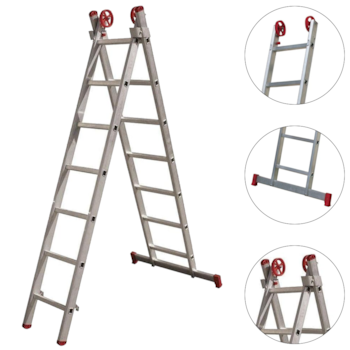 Pode ser usada fechada como uma escada de encosto, estendida ou no formato pintor.