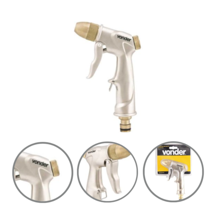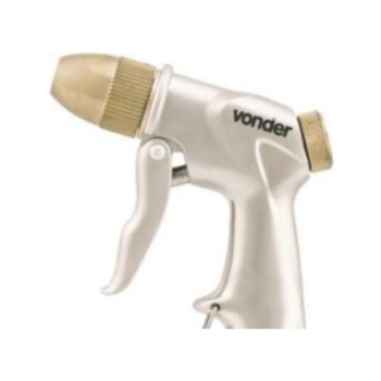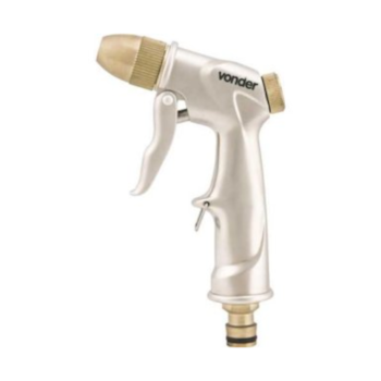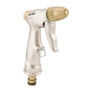 Esguicho metálico para jardim, tipo pistola, engate 1/2", EP 500, VONDER. Produzido em alumínio, proporcionando maior durabilidade. Indicado para uso doméstico, limpeza de calçadas, veículos e jardinagem.