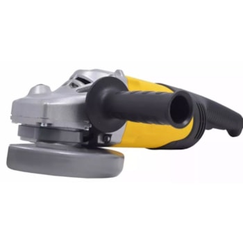 Esmerilhadeira angular 7" com motor de 2200W e engrenagens em espiral, que reduzem a vibração e aumentam a vida útil do equipamento. Possui caixa de engrenagens metálica e interruptor selado contra o pó.
