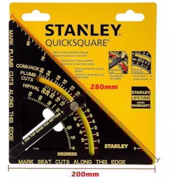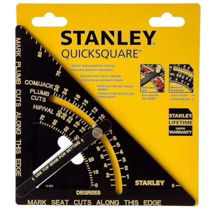 Construido de alumínio ultra resistente para maior durabilidade; O corpo preto com graduações amarelas fornece a máxima legibilidade em várias condições de luz; Além de esquadro, esta ferramenta contém atributos para serem utilizados como transferidor de ângulo, aumentando suas aplicações; O design ajustável e multifuncional pode ser usado como guia de serra, chanfro ou transferidor; Haste ajustável.