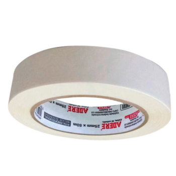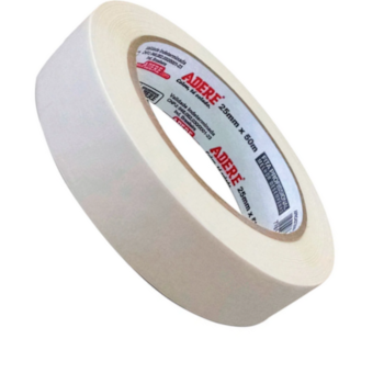 Fita adesiva de papel crepado tratado com solução base borracha e com adesivo a base de borracha e resina. Ideal para pintura imobiliária, sem deixar resíduo de adesivo e sem remover tinta da parede