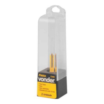 Fresa com dentes de metal duro, reta, para acabamento, sem rolamento, 6 mm VONDER. Alto desempenho de corte para fresagem em geral conferindo maior durabilidade. Indicada para uso em tupias manuais para corte de madeiras e derivados.
