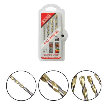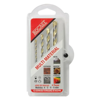 Jogo de Brocas Multi Materiais (Pastilha de Metal Duro) - 4 Pcs - 4,0 a 8,0mm - Rocast. Aplicação: metal, alvenaria, concreto, madeira e plástico.