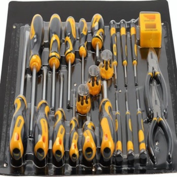 - 05 Chaves de fenda: 1/8"x3", 3/16"x4", 1/4"x1.5", 1/4"x4" e 5/16"x8" |