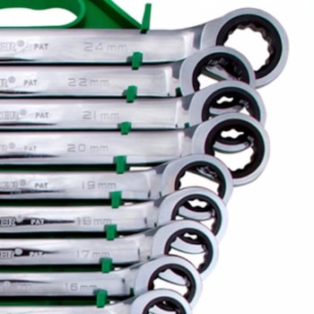 Precisão de 5º no giro da catraca nos tamanhos de 10 até 24 mm, 6º para as chaves de 8 e 9 mm