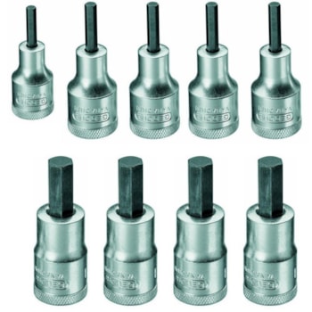 Fornecido em estojo metálico, com acabamento em pintura eletrostática na cor azul padrão Gedore e berço em polímero. Dimensões externas do estojo: 282,4 x 38,2 x 77,4 mm (comprimento x altura x largura).