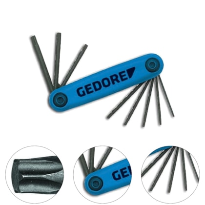 Jogo de bolso indispensável para o eletromecânico. Chave para parafusos com geometria GTX (perfil hexalobular) interno.