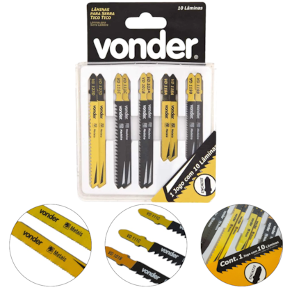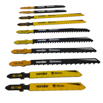 Jogo misto, sendo os modelos VD 118A e VD 127D para metais e VD 101B, VD 111C e VD 119B para plásticos, madeiras e derivados.
