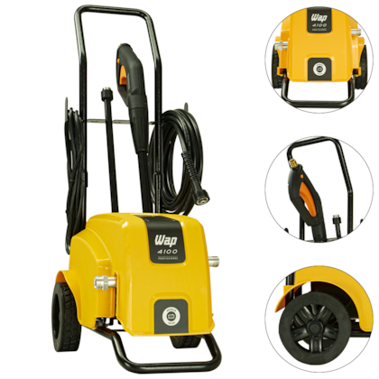 Ela cabe, inclusive, na caixa de transporte de motocicletas. Possui um exclusivo porta-acessórios que ajuda na organização dos componentes do produto e rodas emborrachadas, antiderrapantes, que não riscam o piso e facilitam o transporte. A Desobstruidora e Lavadora de Alta Pressão WAP ULTRA 4100 conta com uma bomba axial com cabeçote em alumínio e pistões em aço inox que garantem mais durabilidade ao produto. Além disso, vem com cabo elétrico de 5 metros, mangueira desentupidora de 2 metros e mangueira de alta pressão de 7,5 metros que permitem cobrir uma grande área sem precisar locomover a máquina. Vem com trava de segurança da pistola, bico leque 15° e o sistema stop total, que corta o fluxo de água e a energia do motor ao soltar o gatilho, poupando energia e aumentando a vida útil do motor.