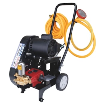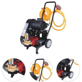 Hidrolavadora de alta vazão indicada para aplicação geral na lavagem de pisos, paredes, câmaras, tanques, aviários, veículos de passeio, peças, estábulos, residências, lava-rápido, estacionamentos, pátios, entre outros.