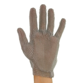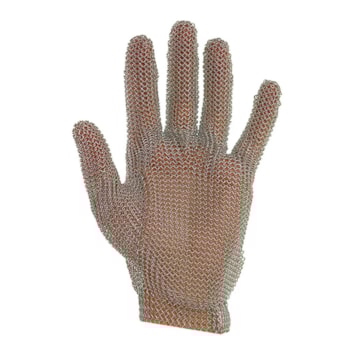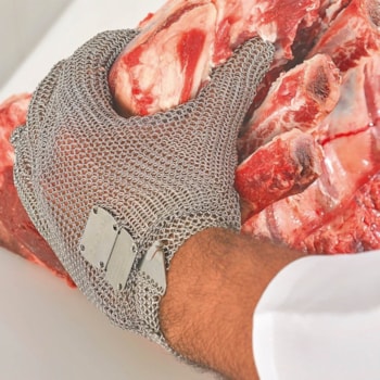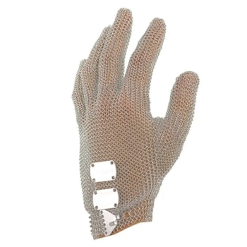 A luva de malha de aço inoxidável da Starrett oferece toda a segurança e resistência contra cortes por golpes de facas manuais e objetos similares.