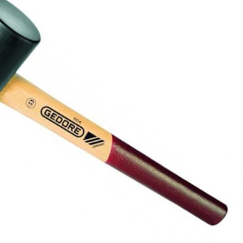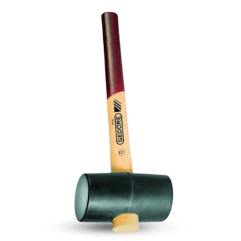 Cabo em madeira nobre, com acabamento em pintura em verniz incolor, e empunhadura ergonômica em pintura na cor vermelha padrão Gedore.