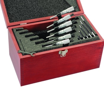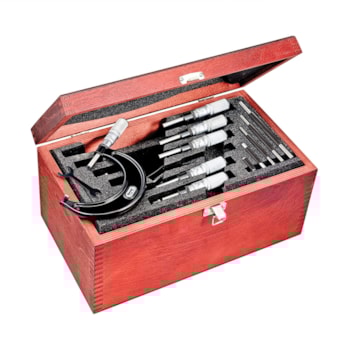 O Conjunto de Micrômetros Externos Starrett S436.1 inclui micrômetros de 1", 2", 3" e 4", três padrões, chave de ajuste, no estojo. Os micrômetros de precisão mais populares usados por trabalhadores qualificados em todo o mundo. Bigornas com tamanho de 0,250" (6,35 mm) de diâmetro para facilidade de uso em trabalhos maiores. Este modelo possui Faixa de Medição de 0-4". Dedal de fricção suave para pressão uniforme, a combinação de catraca e acelerador para pressão uniforme e ajuste mais rápido, ou um micrômetro simples que depende de sua própria sensação. Recomendado para mecânica, serviços automotivos e oficinas mecânicas, ferramentas, departamentos de inspeção e onde a medição envolve uma ampla gama de medições.