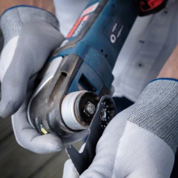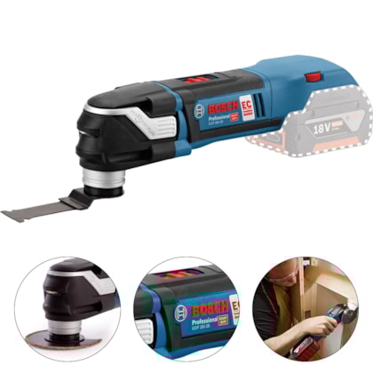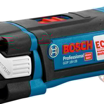 A Multicortadora a Bateria Bosch GOP 18V-28, 18V, possui motor sem escovas de carvão livre de manutenção, com o dobro de vida útil e maior autonomia.