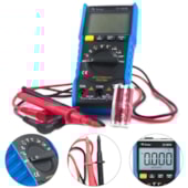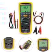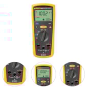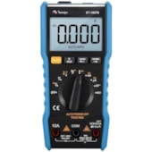 Possui ampla faixa de medição de 1000v true rms para medição precisa de sinais lineares capacitância resistência continuidade e frequência display amplo e fácil de ler luz de fundo para operação em área pouco ilumindadas faixas definidas de maneira manual e automática.