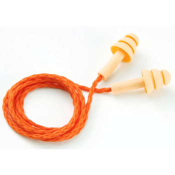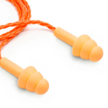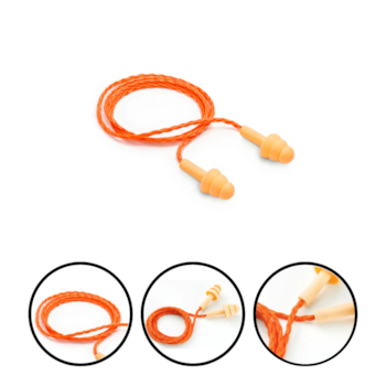 Plug de inserção constituído por três flanges em silicone ou copolímero, ambos com cordão, totalmente antialérgico.