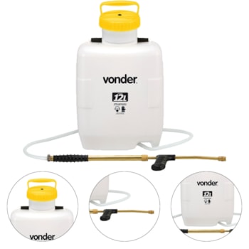 Pulverizador agrícola 12 litros com compressão prévia Vonder, indicado para a pulverização em geral em lugares como hortas, fazendas, chácaras, jardins, gramados e entre outros ambientes. Ideal para a aplicação de inseticida, herbicidas, pesticidas, fertilizantes e desinfetantes.