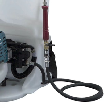 Tanque, mangueira, lança e bico de pulverização