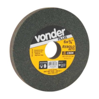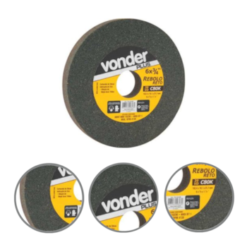 Rebolo reto 6" x 3/4" 39 CVD grão 80 verde VONDER. Proporciona corte frio e rápido. Indicado para afiação de ferramentas de metal duro e vídea. Uso industrial.