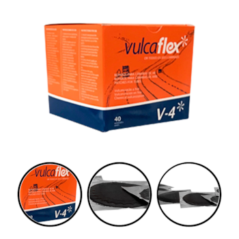 Os reparos redondos são especialmente desenhados para danos circulares, tais como furos de prego, e os ovais para rasgos. Sua aplicação deve ser feita sempre com os Cimentos Vulcanizantes Vulcaflex (FV, FVA, CVB e CB).
