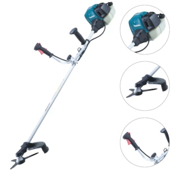 Roçadeira a gasolina com motor 4 tempos é indicada para corte de grama, ervas daninhas, mato e vegetação rasteira. Ideal para áreas amplas e corte de grama mais densa. Conta com guidão assimétrico e design ergonômico, facilitando a utilização. Possui acionamento facilitado do acelerador e regulagem do guidão. Permite troca de óleo de forma simples e manutenção fácil.