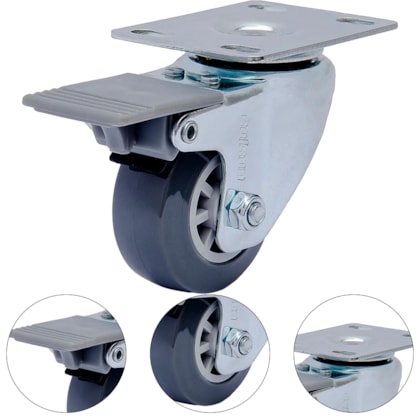 Rodízios com dupla pista de esferas gerando maior conforto e resistência e acabamento zincado branco de alta qualidade, o que permite mais resistência à corrosão.