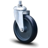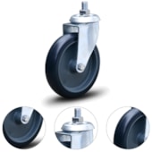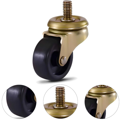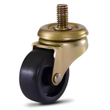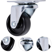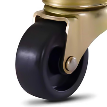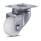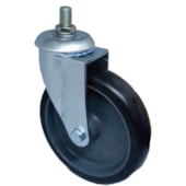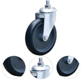 Roda: Em nylon (PA 6) com 20% de fibra de vidro na cor preta, furo passante. Dureza 75 Shore D (-30°C a 100°C).